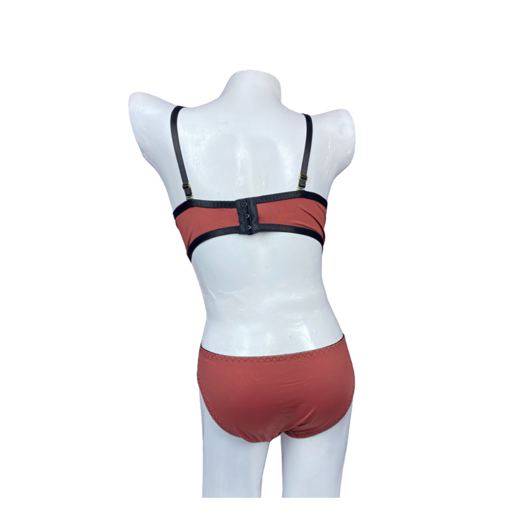 The matching bottom mirrors the same modern design language, featuring coordinated strap elements that enhance the set’s cohesive look. The mid-rise silhouette provides a comfortable, flattering fit, while the stretch fabric adapts naturally to your body for ease of movement and long-lasting comfort. Durable stitching and premium construction ensure this set remains a timeless favorite in your collection.